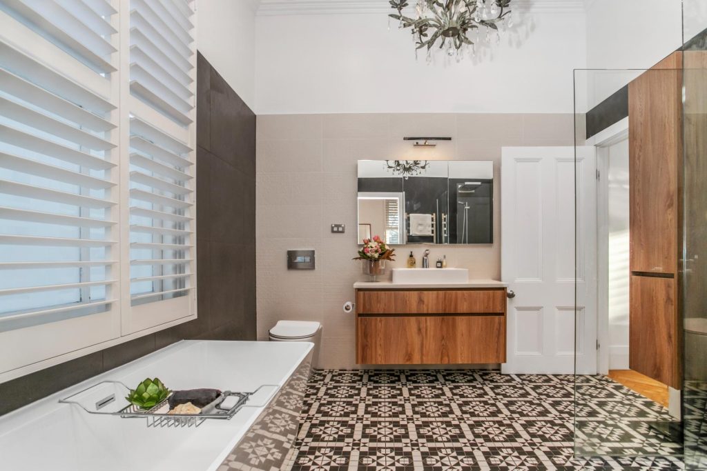 The client desired a large, luxurious bathroom that could be accessed from both the living area and as an ensuite. We transformed the old dining area into a beautiful, spacious bathroom featuring: